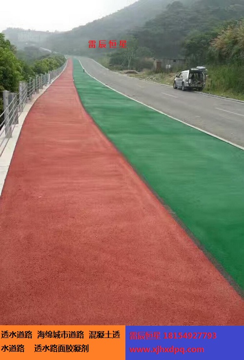 4、輥壓:振搗以后,應進一步采用實心鋼管或輕型壓路機壓實壓平透水混凝土拌合料,考慮到拌合料的稠度和周圍溫度等條件,可能需要多次輥壓,但應注意,在輥壓前須清理輥子,以防粘結(jié)骨 料。