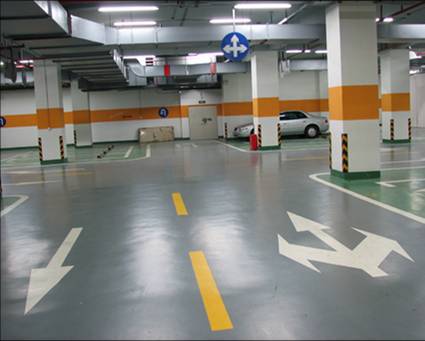 停車場劃線工程施工時,如果車長不大6米及車寬不大于1.8米的車,規(guī)范車與車之間間距為不小于0.5米,車與墻、車位端之間間距不小于0.5米;車長大于6米不大于8米,車寬大于1.8米不大于2.2米的話,車與車之間間距不小于0.7米等?;剀嚶范蔚南鄳?guī)范是滿足一輛車一次性回轉的需要,這實際上為不同類型的停車場提供了不同的尺寸松動。因此對于一般以停小型車為主的停車場來講,車位尺寸多采用2.5~2.7×5~6的尺寸,而單車道回轉車道寬度不小于3.5米,雙車道不少于5米。