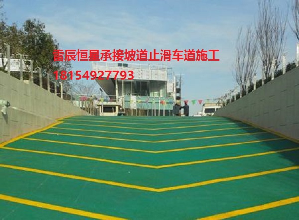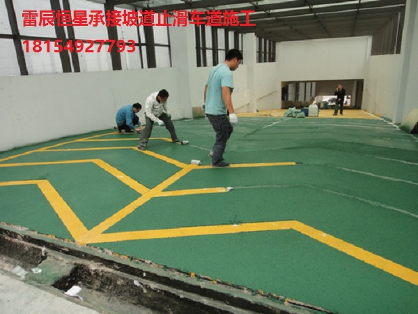 3.防滑車道地坪(止滑車道)是一種多角性硬度極高的礦物骨料與改性樹脂、其它摻和物和外加劑組成,采用特種現(xiàn)場工藝施工而成,其成品具有防滑耐磨、舒適無震動等多種優(yōu)異的性能,而且圖案美觀鮮明、標志性強。相對于傳統(tǒng)的水泥坎車道的震動大、易粉化、不舒適、檔次低和防滑地磚車道、花崗巖車道的阻力小、易滑危險等缺陷,無震動防滑車道已成為汽車上下坡道、交通道路、美化區(qū)域的*產品。 適用范圍:各種停車庫的上下坡道、道路路口、自行車道路、公交車道、汽車上下坡道、機場上下坡道、斜坡及路面等有特殊防滑要求及處理的部位、路面、美化區(qū)域等。